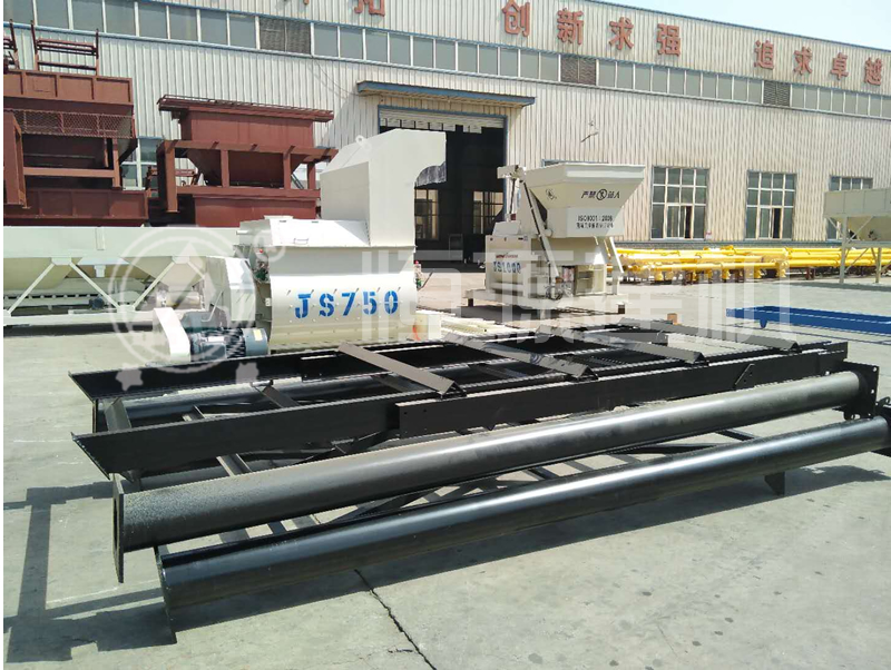 攪拌主機以及骨料提升都是采用JS750雙臥軸強制式攪拌機,骨料配料部分采用的是PLD1200型混凝土配料機,裝載機上料,電子秤計量;