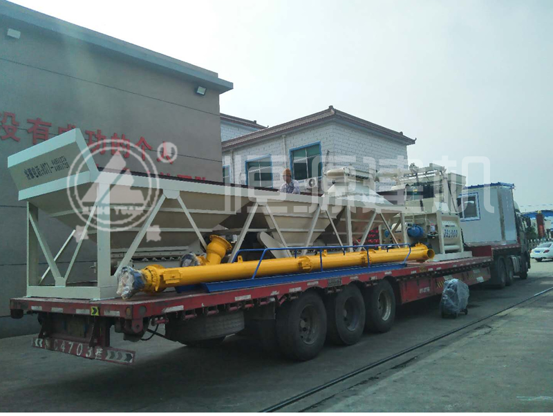 鄭州恒源建機 50型攪拌站 裝車現場 HZS50混凝土攪拌站組成有:主機、配料機、螺旋輸送機、水計量、外加劑計量、水泥倉等。HZS50混凝土攪拌站理論生產率是50m/h。HZS50混凝土攪拌站主機