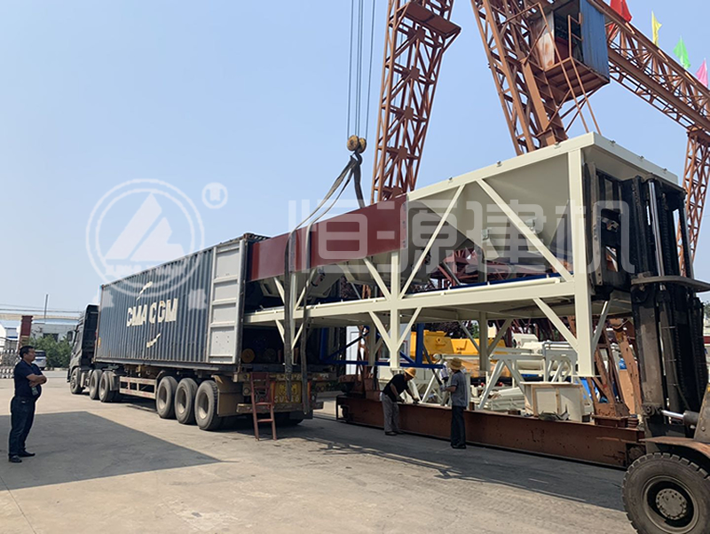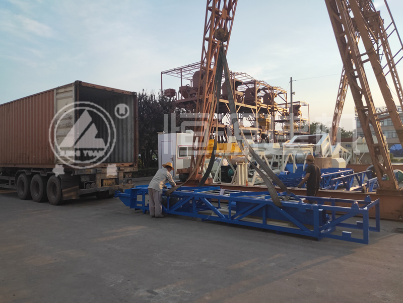 恒源建機 簡易90型攪拌站 正在出口裝箱中 剛進入初伏天,裝車班工人師傅加班加點,進一步提升貨物發送能力,保證有效率的完成裝車。 HZS90型混凝土攪拌站 主機采用JS1500雙臥軸強制