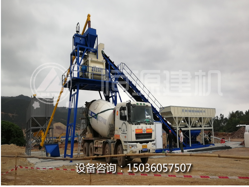 恒源建機 發往廣州90型免基礎攪拌站安裝現場